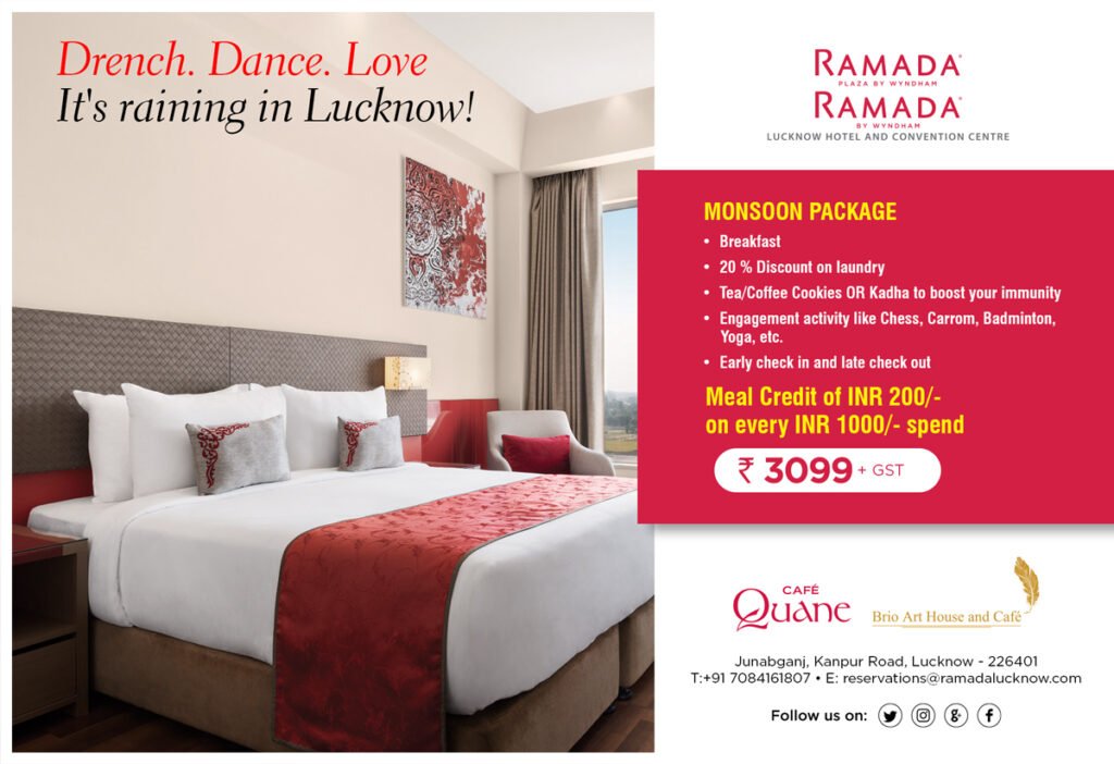 Ramada by Wyndham Lucknow & Convention Centre’s Monsoon Package is the perfect package for your long-deserved getaway from the lockdown blues, and bring the monsoon cheer in your life with your loved ones.